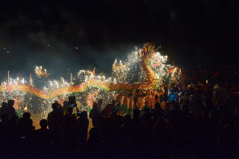 埔寨火龍是我們的春節(jié)傳統(tǒng)活動,據(jù)說至今三百年歷史了。“火龍”由鐵絲、竹料、紙等扎成,繪上鱗、角、爪,龍首至龍尾長達數(shù)十米。在龍身上安裝煙花、炮竹、火箭多達數(shù)千枚,龍頭、龍尾裝的火藥更數(shù)不勝數(shù)。一條火龍由三四十個赤膊青年手擎,加上鼓樂手、龍蝦、金魚等人,整個隊伍達200多人。