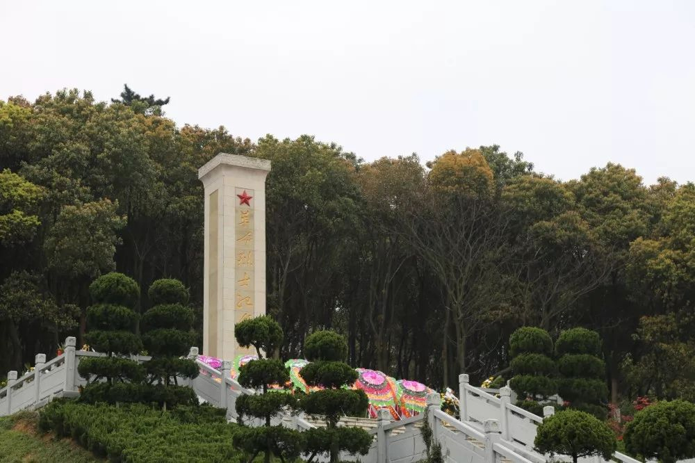 嘉興港區黨工委委員、社發局局長徐林祥,平湖市委宣傳部常務副部長莫忠海、平湖市委組織部副部長何小云、共青團平湖市委副書記王莉莉、平湖杭州灣實驗學校理事長肖家興、杭州師范大學附屬乍浦學校校長姚良、書記萬勤華共同向烈士紀念碑敬獻花圈并整理緞帶。