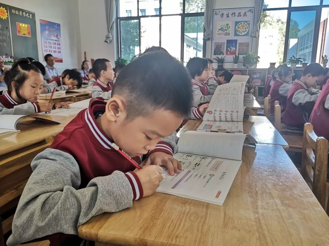 在朗朗的書聲中,丁惠臻老師走進了一(2)班的教室。丁老師用“金木水火土”作為小組名稱,既鞏固了舊知識,又調動了孩子的積極性。通過講解象形文字,孩子們對文字產生敬畏之心。讓生字開花又豐富了學生的詞匯量。運用田字格“九點式”書寫方法,指導學生規范書寫。
