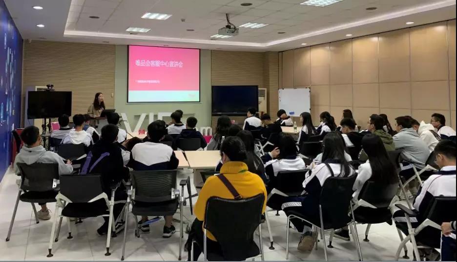 參觀唯品會客服中心時,部門負責人對每個部門進行講解過后,同學們還聽取了前輩們分享實戰經驗。
