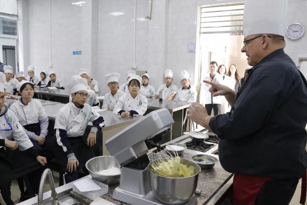 12日上午,包括澳大利亞政府貿(mào)易投資委員會(huì)商務(wù)官員周覓瓊、EHI校長(zhǎng)Mr.Stuart、首席運(yùn)營官M(fèi)s.Bubpa、亞洲區(qū)域市場(chǎng)經(jīng)理周敏怡、中國項(xiàng)目經(jīng)理歐陽云在內(nèi)的一行來賓便早早抵達(dá)我校,在我校領(lǐng)導(dǎo)及老師的陪同下參觀了烹飪專業(yè)各大實(shí)訓(xùn)室。