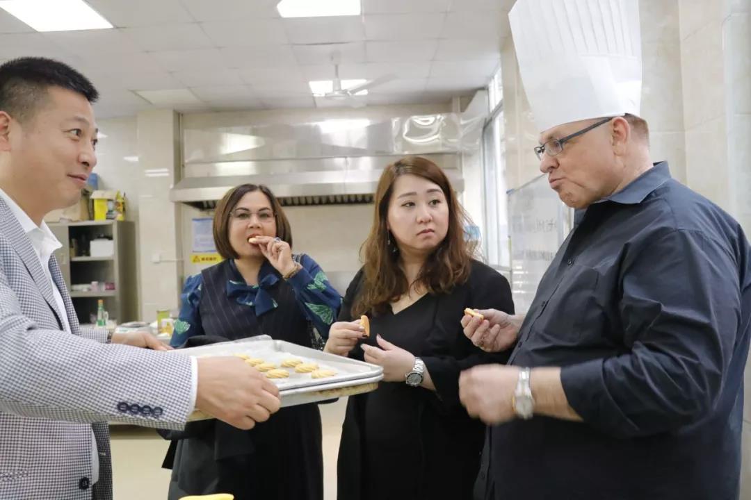 參觀過程中,來賓們對(duì)我校中餐烹調(diào)及面點(diǎn)制作課堂表現(xiàn)出強(qiáng)烈的興趣,Mr.Stuart表示,這樣的課堂氛圍非常好,學(xué)生以小組為單位,大家相互協(xié)作,凝結(jié)智慧,制作出的作品都是獨(dú)一無二的。