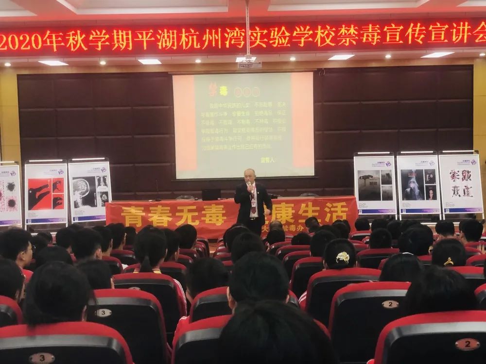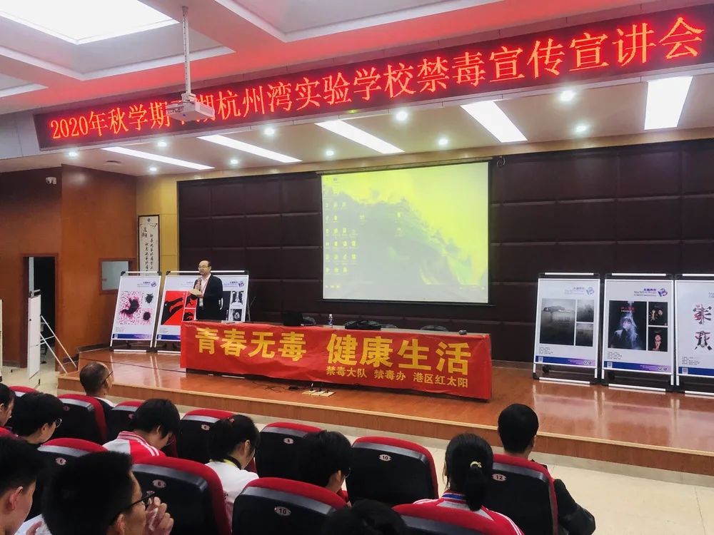 為了貫徹落實國家禁毒委員會及教育部對在校學生毒品預防教育工作的精神,全面加強同學們對毒品危害的認識,普及毒品預防知識,教育同學們自覺遠離毒品,營造無毒校園,10月28日晚上,我校開展了由嘉興港區禁毒大隊,禁毒辦,港區紅太陽共同攜手合作舉辦的“青春無毒,健康生活”主題禁毒宣傳宣講會,嘉興港區公安分區禁毒大隊李良薦警官,嘉興港區紅太陽社工服務中心禁毒代表黃玲秀老師,高中部執行校長羅顯,安全校長時兆鵬,德育處主任王域和高一、二年級全體師生出席了本次活動。