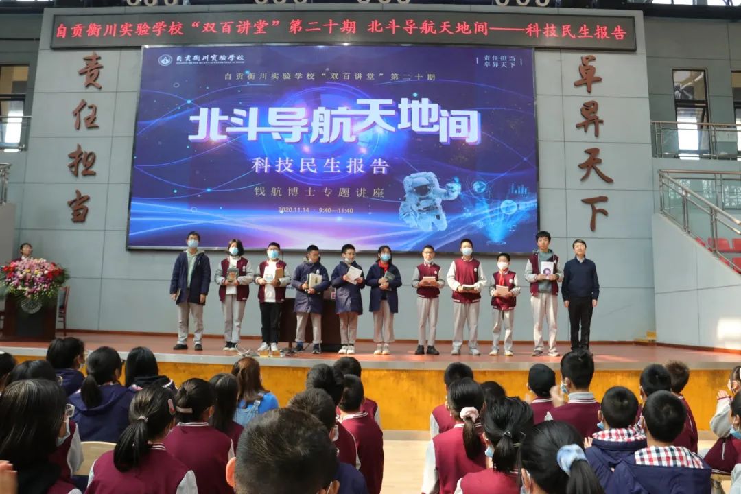 11月14日,中國航天科技集團中國運載火箭技術研究院總體設計部火箭設計師、中國科學院國家空間科學中心博士錢航走進衡川“雙百講堂”,與莘莘學子共話科技,揭開北斗衛星導航系統的神秘面紗!我校小學、初中、高中1500余名師生參與了本次活動。