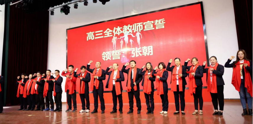 鮮紅的圍巾飄揚,老師們莊嚴(yán)宣誓,像軍師一般,為同學(xué)們定軍心、昂斗志,讓同學(xué)們知道,高考不是我們獨自的戰(zhàn)場,老師們永遠(yuǎn)與我們一起戰(zhàn)斗。
