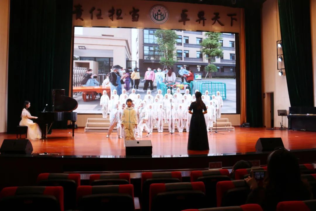 《女兒的日記》,該歌曲由我校唐貴飛老師根據(jù)富順赴武漢抗疫醫(yī)護(hù)人員馮敏女兒的日記創(chuàng)作。孩子們現(xiàn)場(chǎng)深情演唱,重現(xiàn)抗疫期間令人敬佩的最美逆行者!