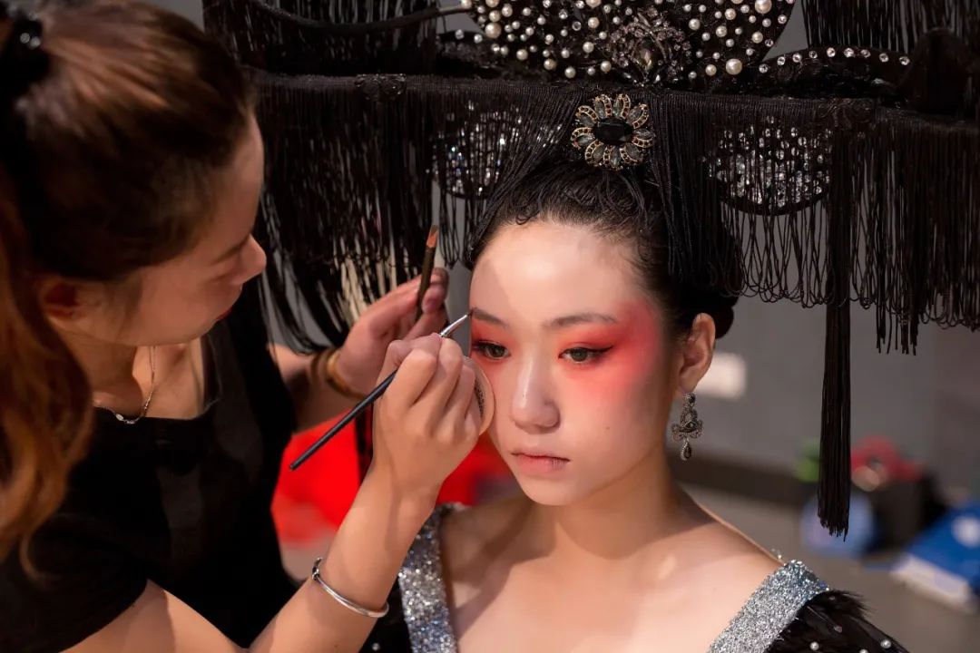 “本屆的形象設計作品都是同學們的原創。我們所說的形象設計主要是指人物形象設計,它涵蓋了多方面比如妝面、發型、服飾、美甲甚至一些彩繪,是對人物整體形象的設計,突出人物的精神面貌和氣質。”
