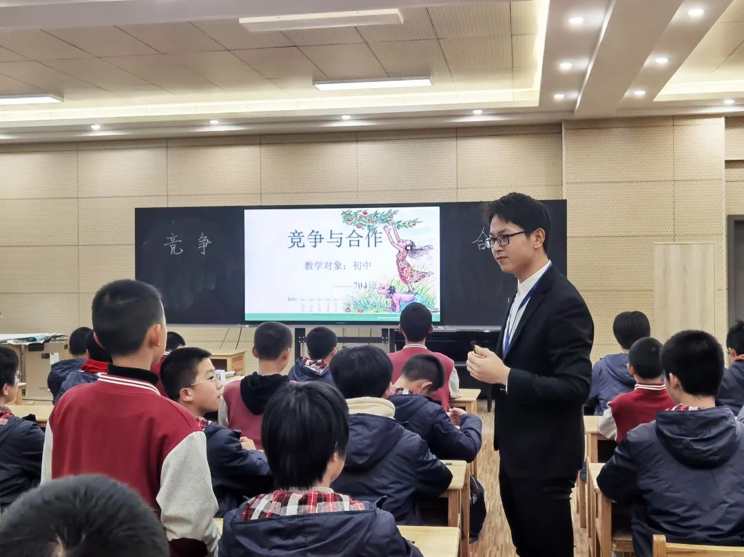 七六班班主任常雪晴老師和七四班班主任李金龍老師,實現了班會課的同題異構,都已《競爭與合作》為主題,共同探討了競爭與合作的關系。